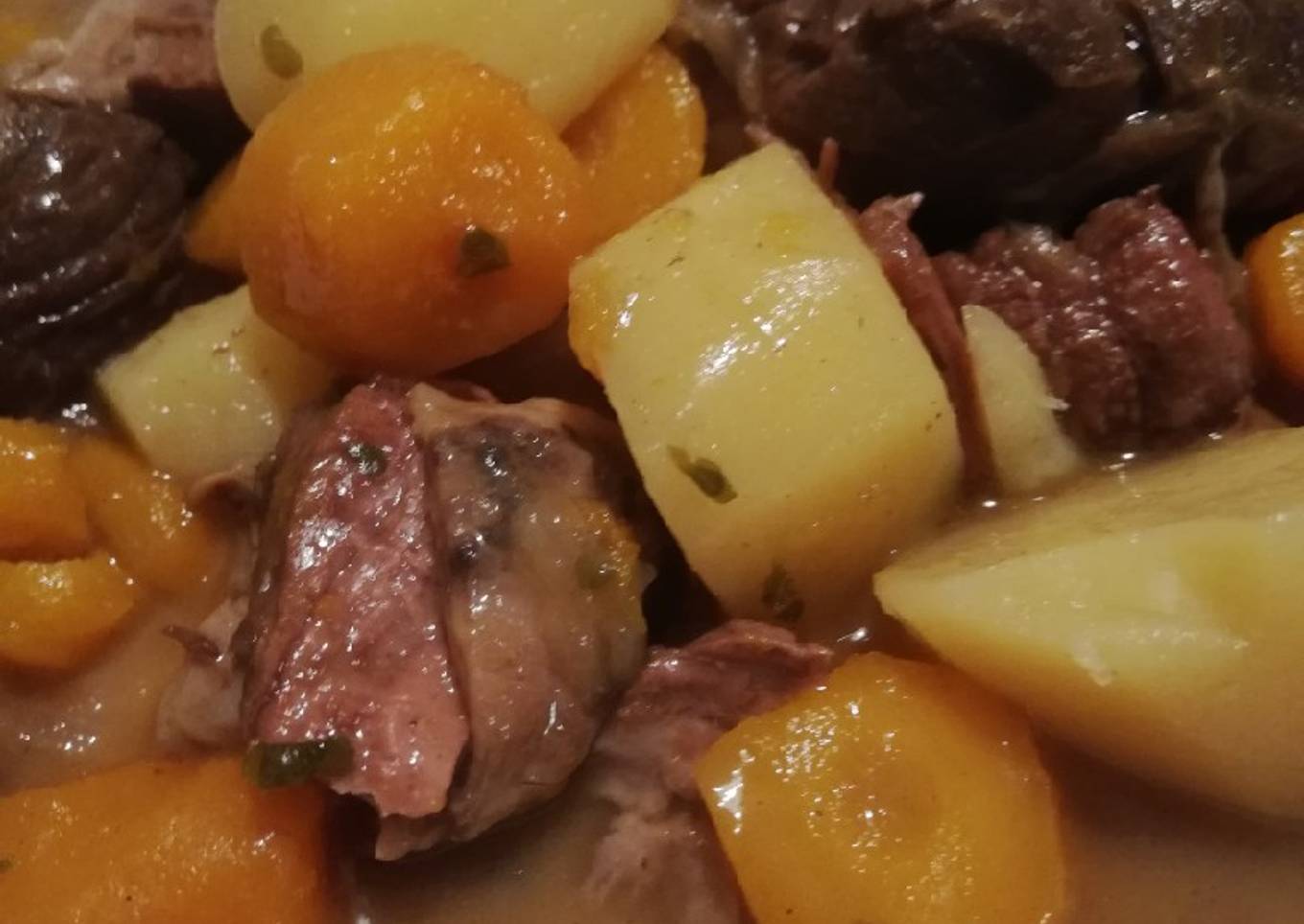 - Mettre les carottes et faire mijoter 1h. Ensuite mettre les pommes de terre et cuire 4h mini a feu moyen.