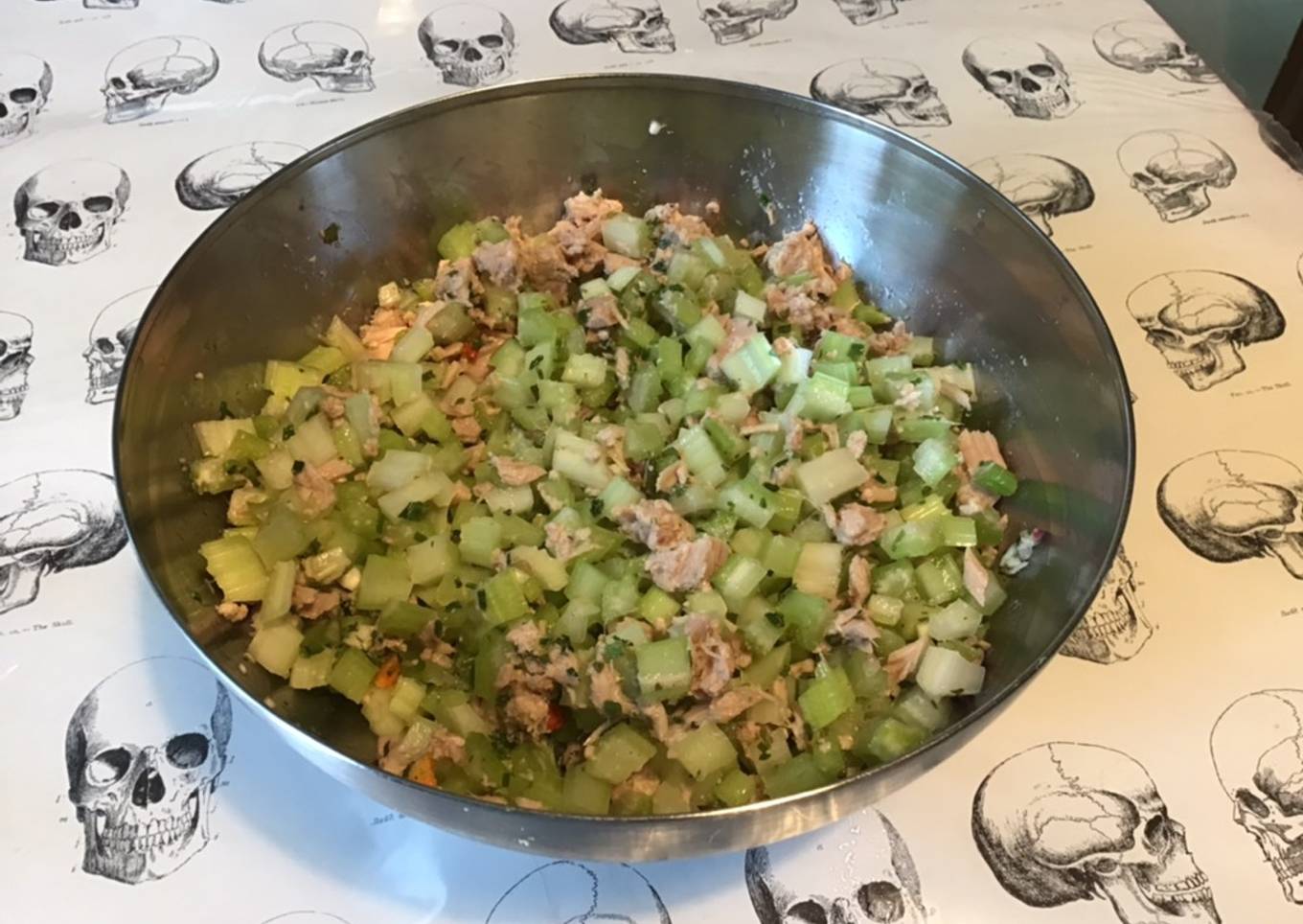 - Ajouter le thon au céleri mélanger presser les citrons ajouter les herbes