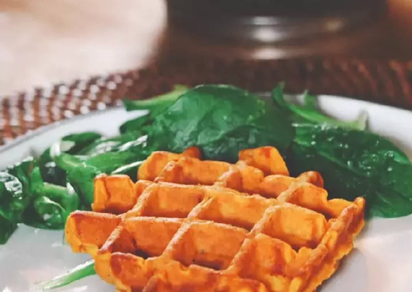 - Huiler une plaque à gaufrier et disposer la pâte à gaufres. Cuire au gaufrier et servir avec une salade de mâche.